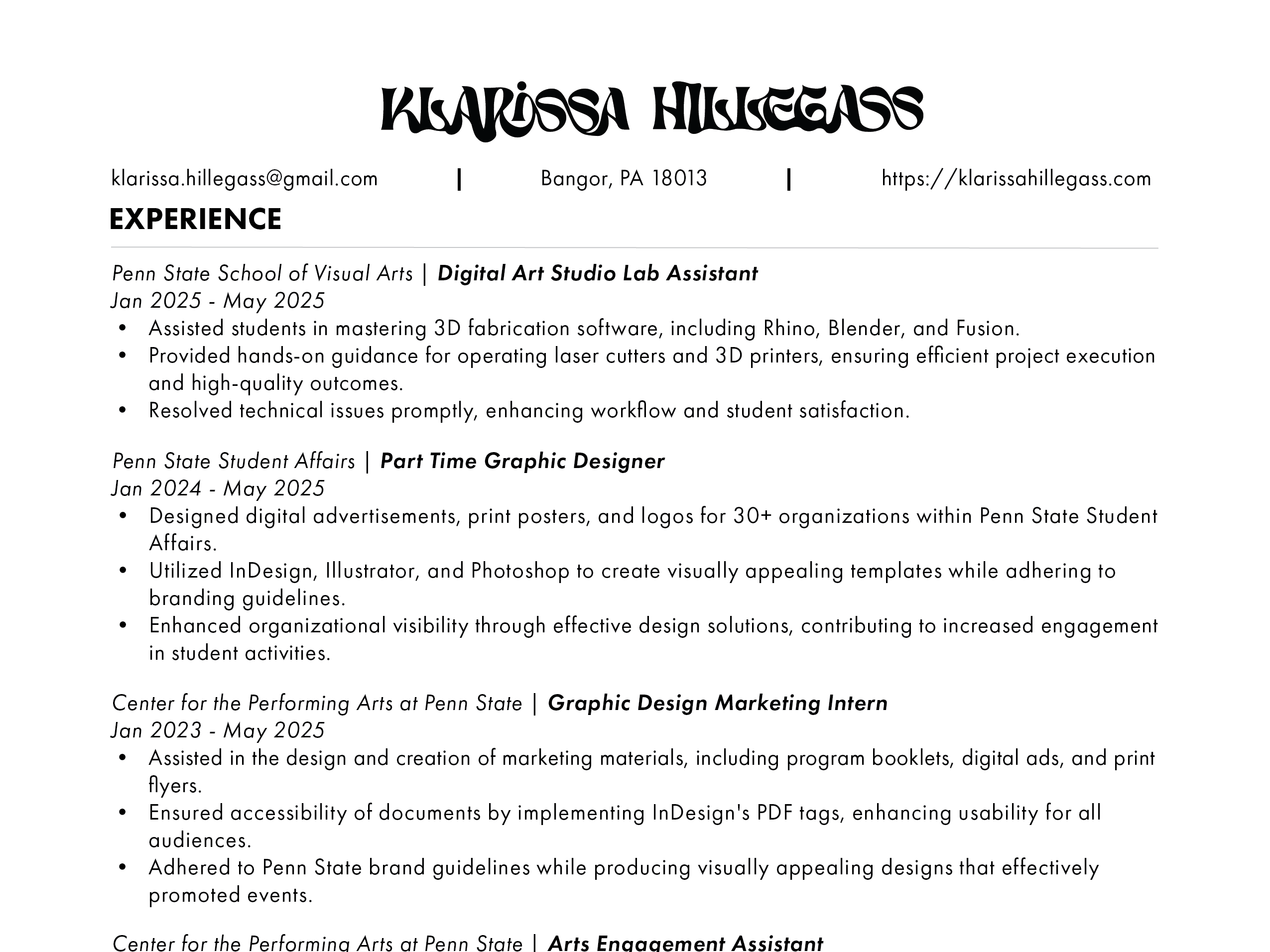 I am currently a Digital Arts and Media Design major at Penn State heading into my third year in the program, and my fourth year at the university. I am also pursuing an art minor with a focus in sculpture.