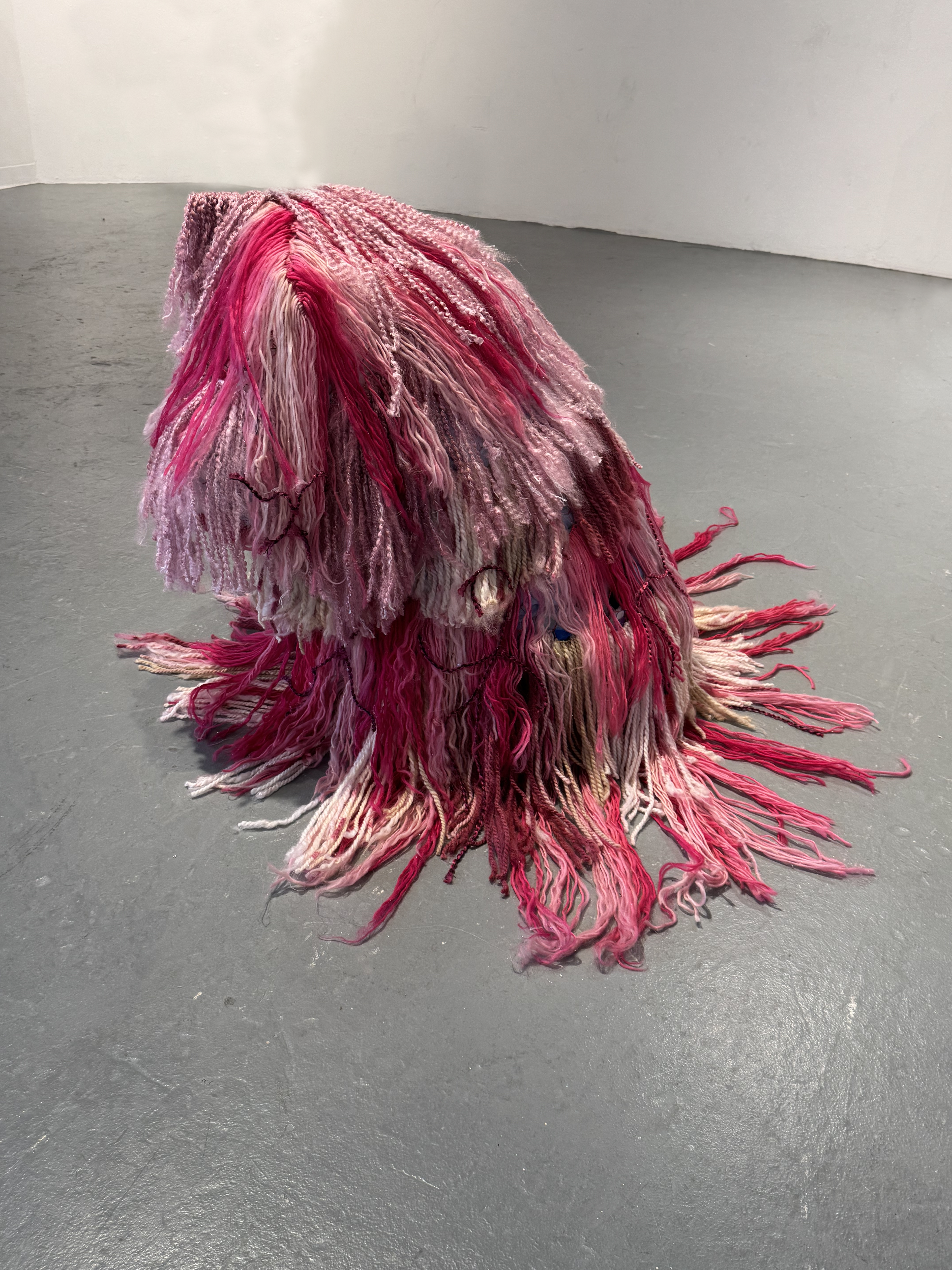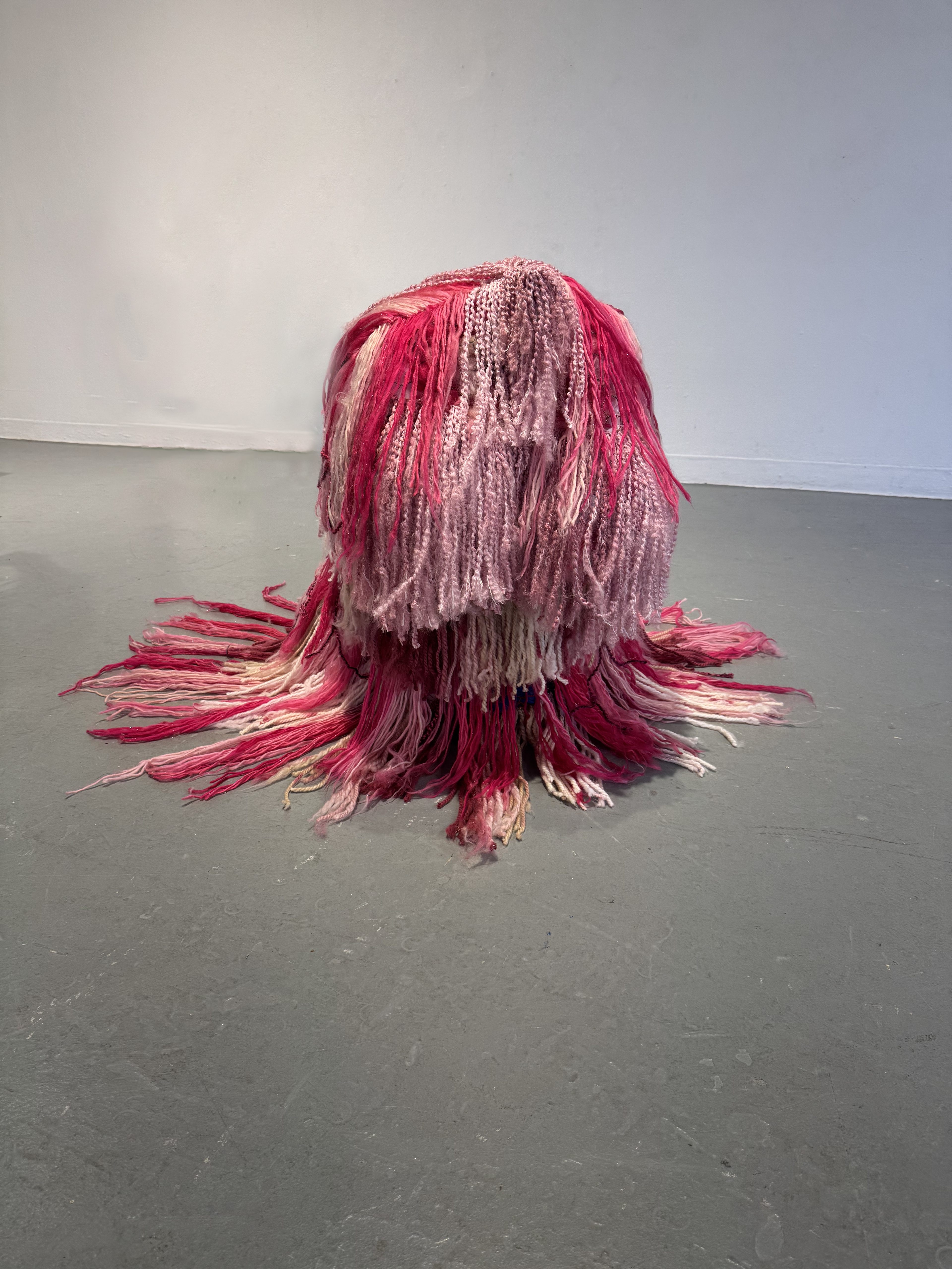 Scars is a sculptural piece created from a wood, steel, and chicken-wire frame that is adorned with layers of yarn. The piece carries multiple different meanings surrounding women's bodies and societal expectations.